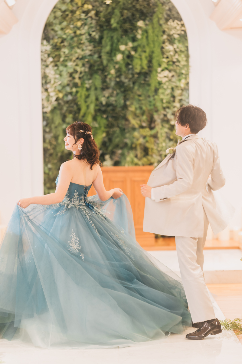 ウェディングドレスとカラードレス全く異なる雰囲気に♡