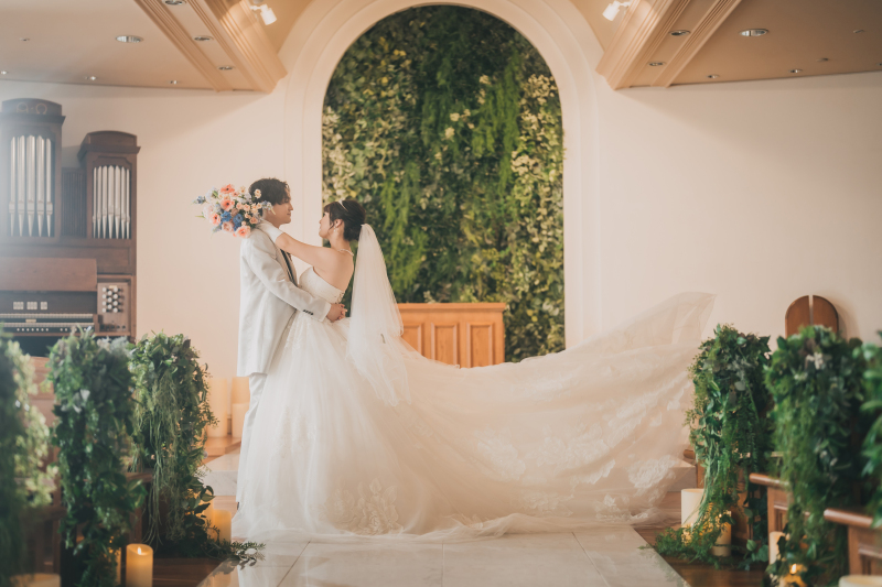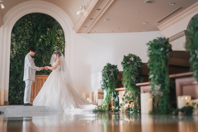 チャペルでは挙式風のお写真を撮影♡緊張で真剣に…ではなくおふたりらしく笑顔の中、愛を誓っていただきました♡